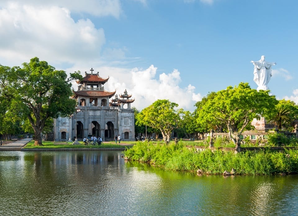 À 35 kilomètres de la ville de Ninh Binh, au cœur du delta du fleuve Rouge, se dresse un monument étonnant, à la fois cathédrale et pagode, à la fois occidentale et résolument vietnamienne : la cathédrale en pierre de Phat Diem. Ce lieu unique, souvent méconnu des voyageurs, mérite pourtant une halte prolongée. En franchissant ses portes, on ne découvre pas seulement une église, mais un pont entre deux mondes, entre deux cultures, entre deux esthétiques religieuses que tout semble opposer, sauf la quête de beauté et de transcendance.