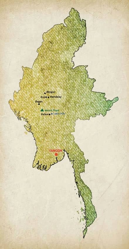 Ce pays encore largement méconnu offre un éventail impressionnant de paysages, entre lacs, montagnes et rizières mais aussi plages de rêve et littoral enchanteur. La ferveur bouddhiste est partout présente et palpable, dans le plus petits des stupas, jusqu’aux spectaculaires pagodes de Bagan. Mais ce qu’on retient, c’est le sourire ineffable et l’incroyable gentillesse de tout un peuple, mosaïque culturelle de 135 ethnies.