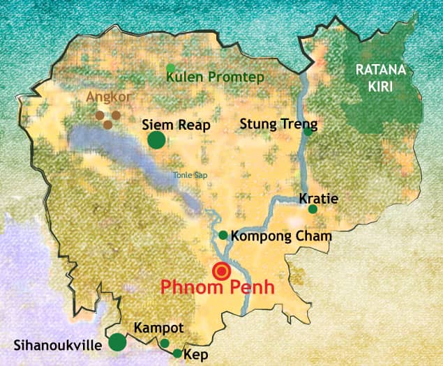 Longtemps quasi inaccessibles en raison de la longue guerre civile qui a sévit jusqu’aux débuts des années 90, les provinces du Nord-Est et de l’Est du Cambodge s’ouvrent peu à peu au tourisme. Malgré l’amélioration des infrastructures routières, se rendre au Ratanakiri (et au Mondolkiri) implique toujours de longues heures de trajet. L’idéal est de faire étape dans la paisible Province de Kratie. Cette très belle région riveraine du Mékong donne l’occasion de découvrir quelques vieilles demeures coloniales, de se balader sur les rives arborées du fleuve, mais aussi tenter d’observer l’espèce menacée des dauphins de l’Irrawaddy.