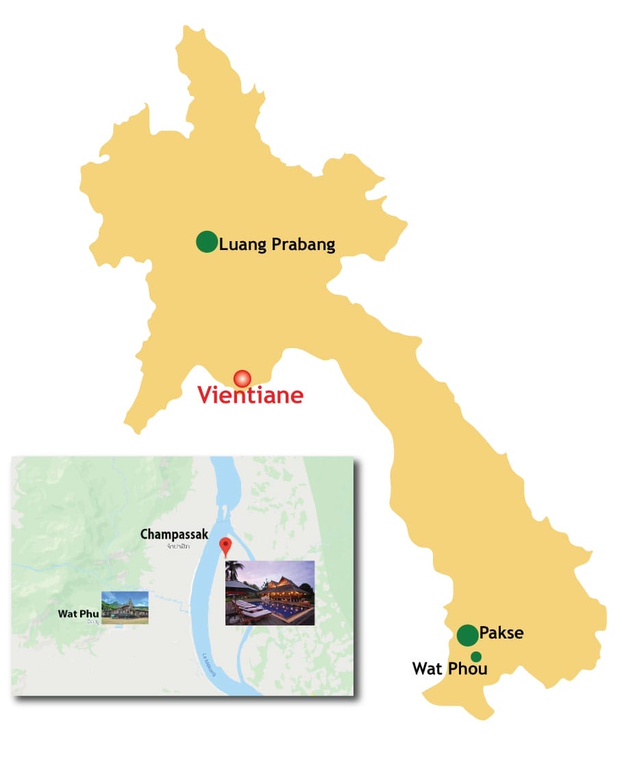 | Lieu magique bercé par les flots du Mékong, La Folie Lodge vous propose des chambres raffinées toutes construites dans des bungalows en bois de rose avec terrasses donnant sur le fleuve ou le jardin. Situé sur la petite île de Done Daeng, face au site archéologique pré-angkorien de Vat Phou classé à l’Unesco, La Folie Lodge se classe parmi les adresses les plus agréables durant votre voyage au Laos pour découvrir la beauté et le charme authentique du Sud du Laos. | ![]() |