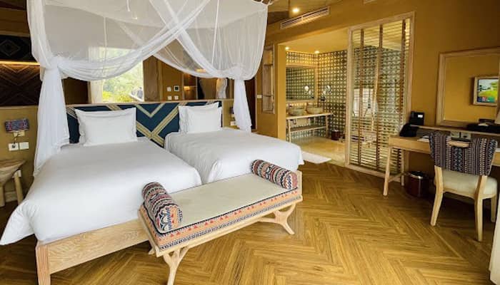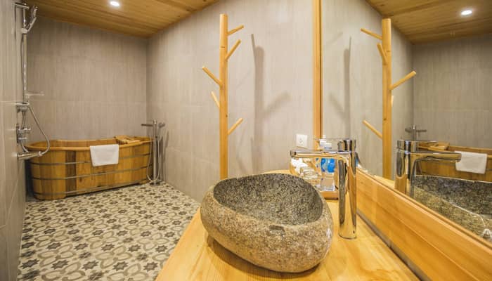 Continuation pour Tu Le Champ, installation dans la chambre au coeur de la nature. Puis, vous faites des balades dans le beau cardre naturel de l'hôtel ou aux alentours de l'hôtel pour contempler les rizières en terrasse, les montagnes et les vallées. Vous pouvez également profiter de la source thermale pour vous relaxer et vous resourcer.